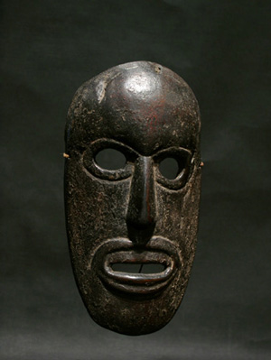 Ancien masque des collines moyennes du Népal. Reste de polychromie par endroits. Très belle patine d'usage. Son front est bombé et il posséde une sorte de double bouche.